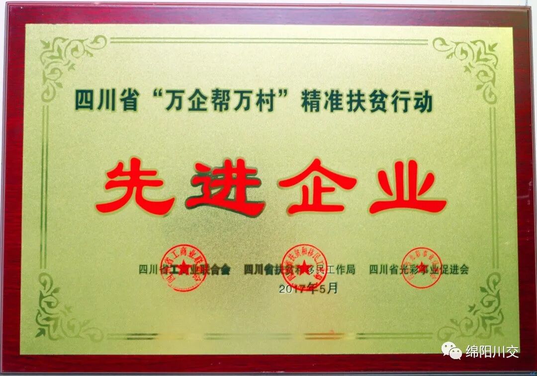 同时,公司不断践行社会责任。先后参与了“助学贫困地区教育事业”、“支持绵阳地区桥梁和农村公路建设”、“万企帮万村精准扶贫”等社会活动,被评为“守合同重信用企业”、“四川省著名商标”、“绵阳市对口援藏先进单位”等称号。
