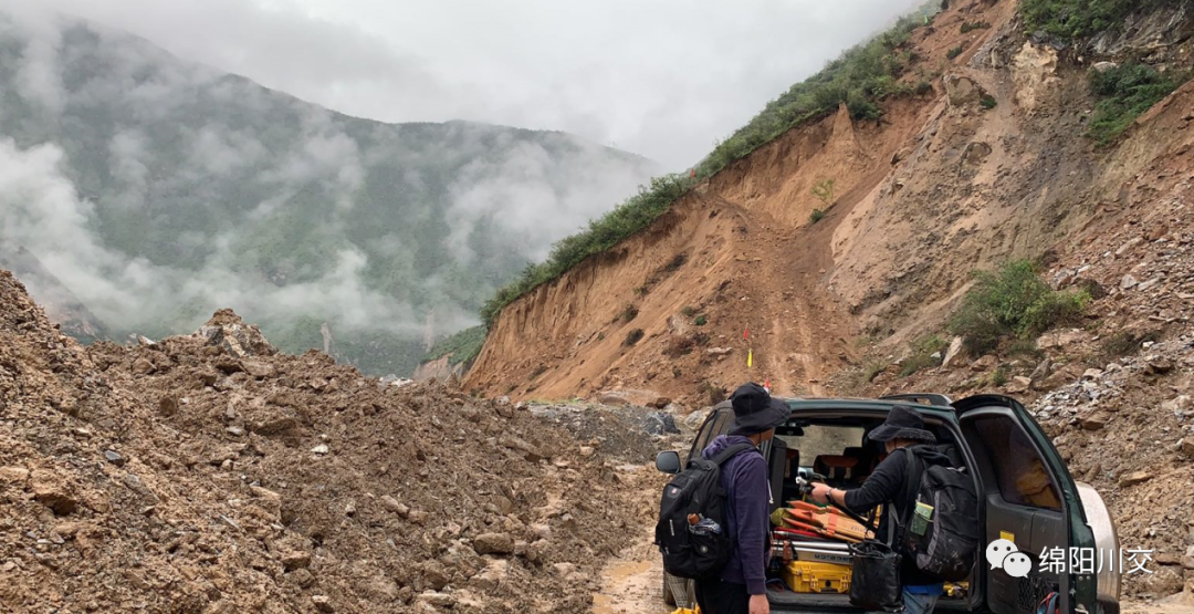 在统计受灾道路期间,由于道路全毁,车辆无法进入,川交人背负物资与工具徒步进入灾区。测量期间顶着随时塌方的危险进行工作,只为在最短的时间内完成道路的修建保通。