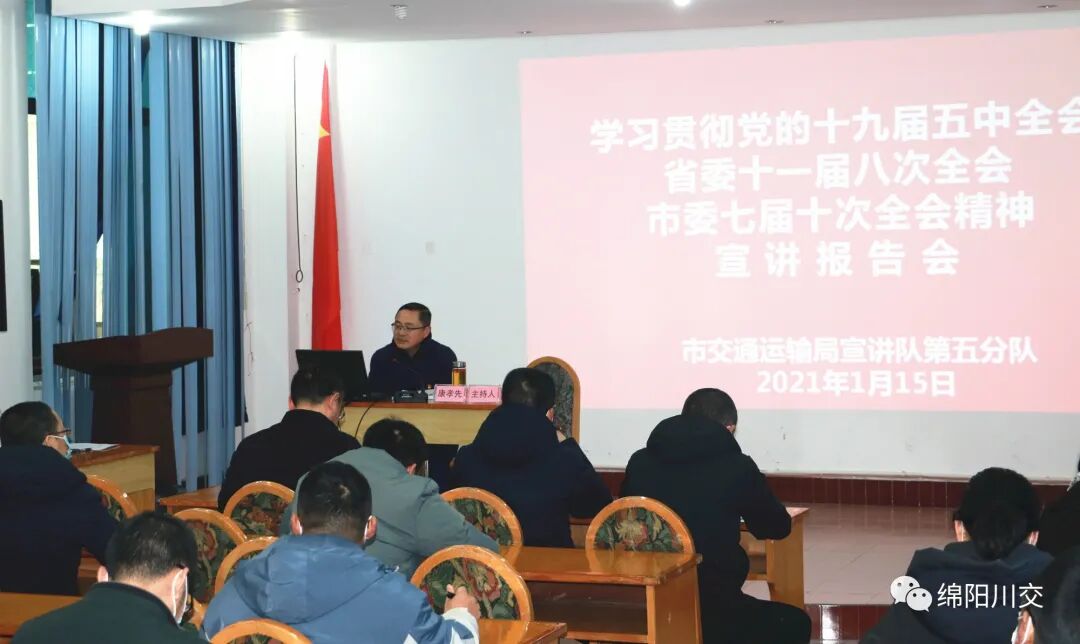 1月15日上午,市交通运输局第五宣讲团成员、局党委委员、副局长康孝先到公司,宣讲党的十九届五中全会和省委十一届八次全会、市委七届十次全会精神。公司董事长、总支书记何鸣主持宣讲报告会。
