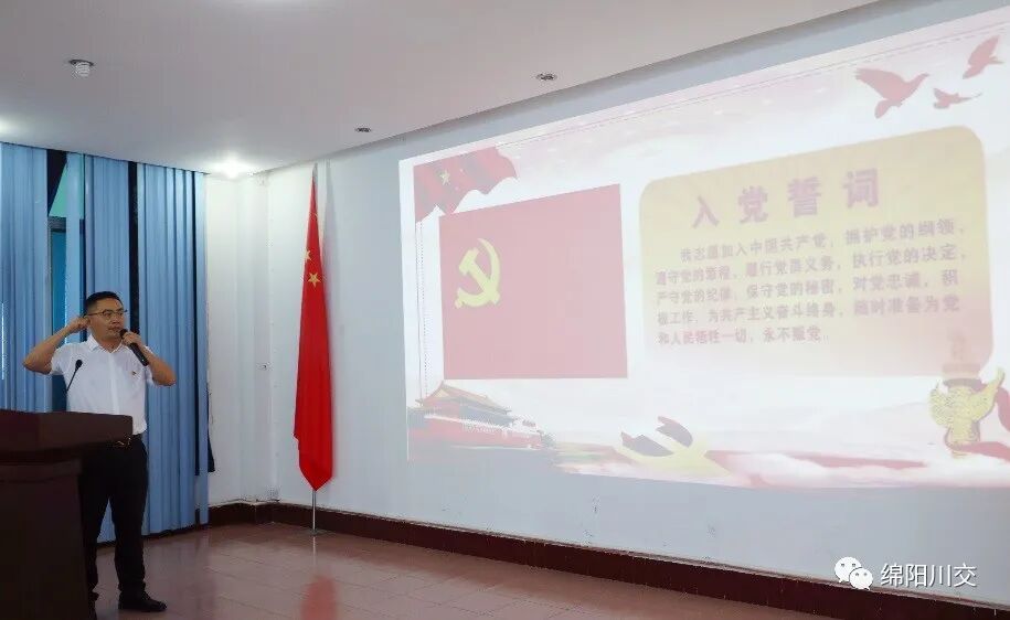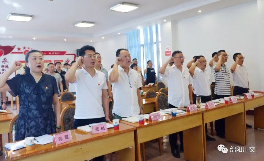 会议在嘹亮的国歌声中拉开序幕,全体人员起立奏唱国歌。副总经理、后勤支部书记胡涛带领全体党员,怀着崇敬的心情面向鲜红庄严的党旗,举起右手,重温了入党誓词。